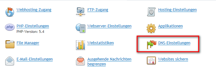 Dann wählen sie "DNS Einstellungen" aus um die DNS Zone für ihre Domain zu verwalten