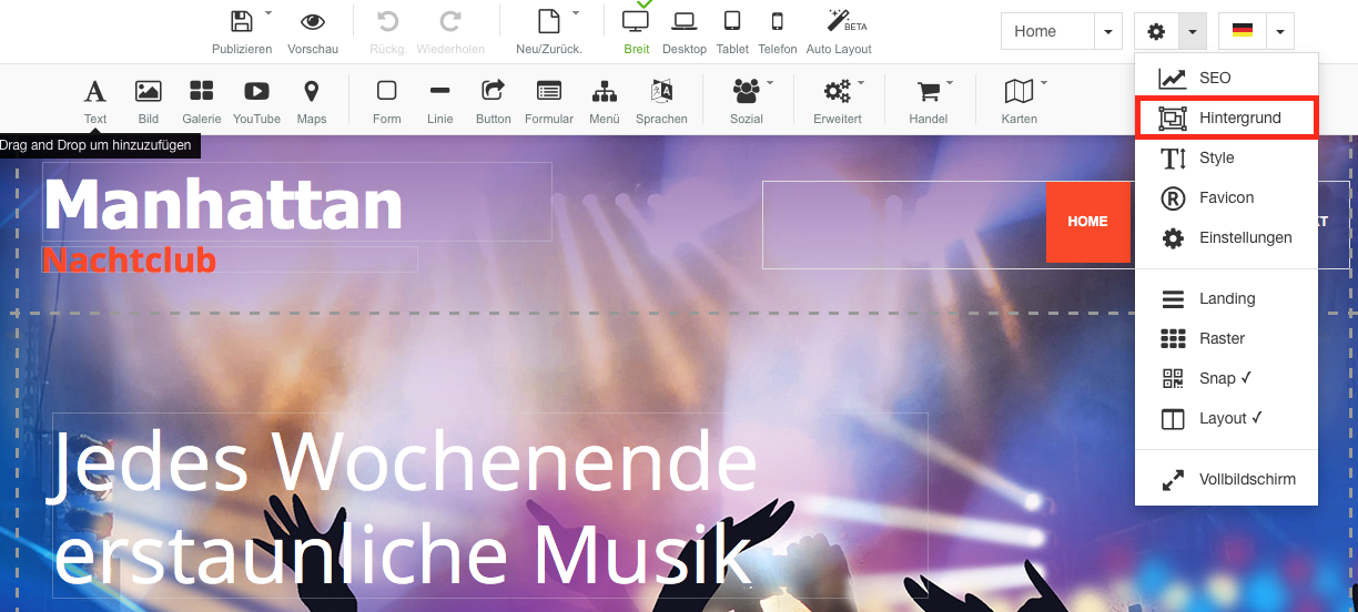 1. In der Navigationszeile unter Einstellungen "Hintergrund" auswählen